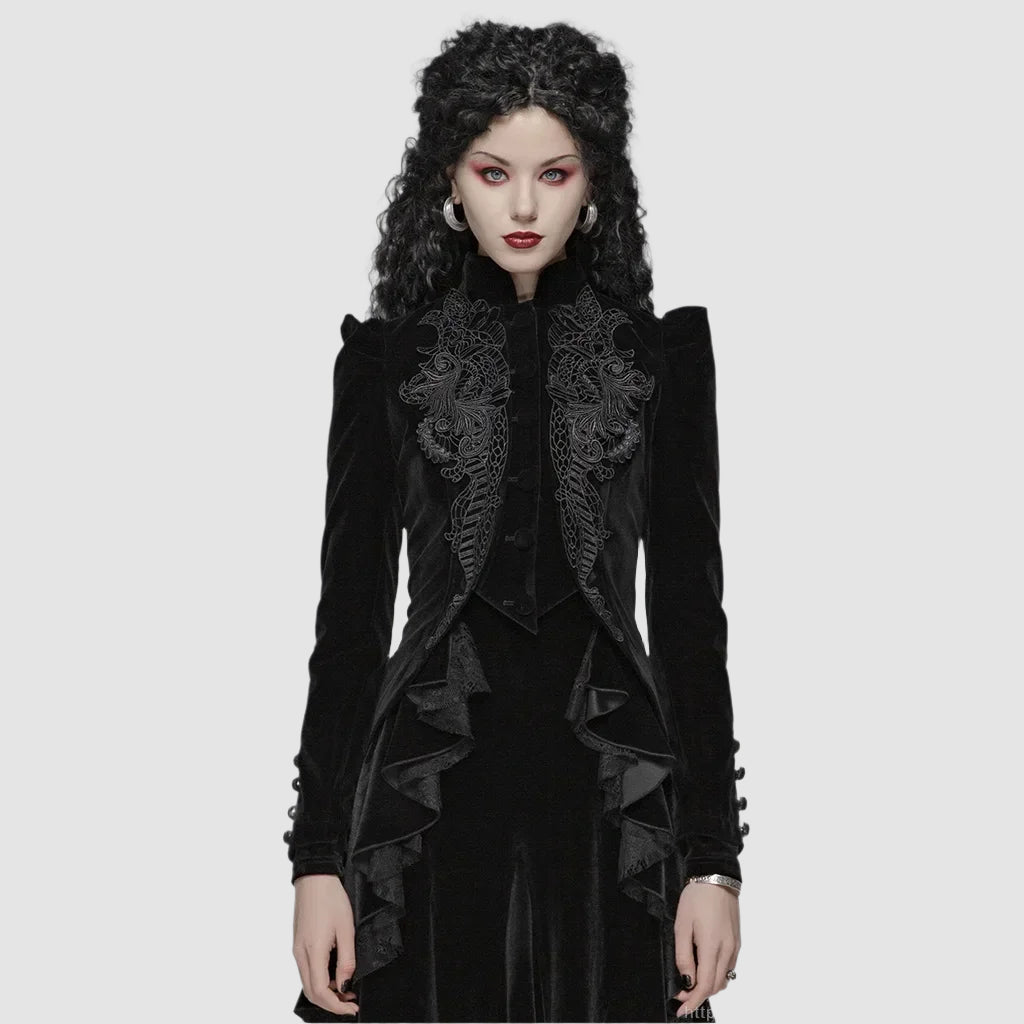 Gótikus kabátok csipkével és hímzéssel: finom részletek sötét stílusban