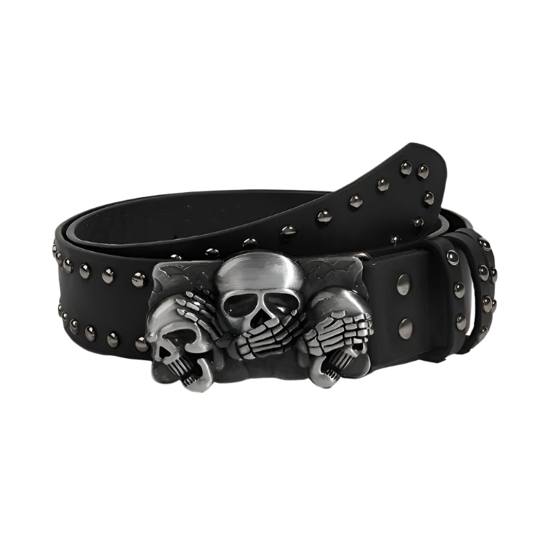 Gótikus öv koponyákkal és tüskékkel - csat 'see no evil' motívummal