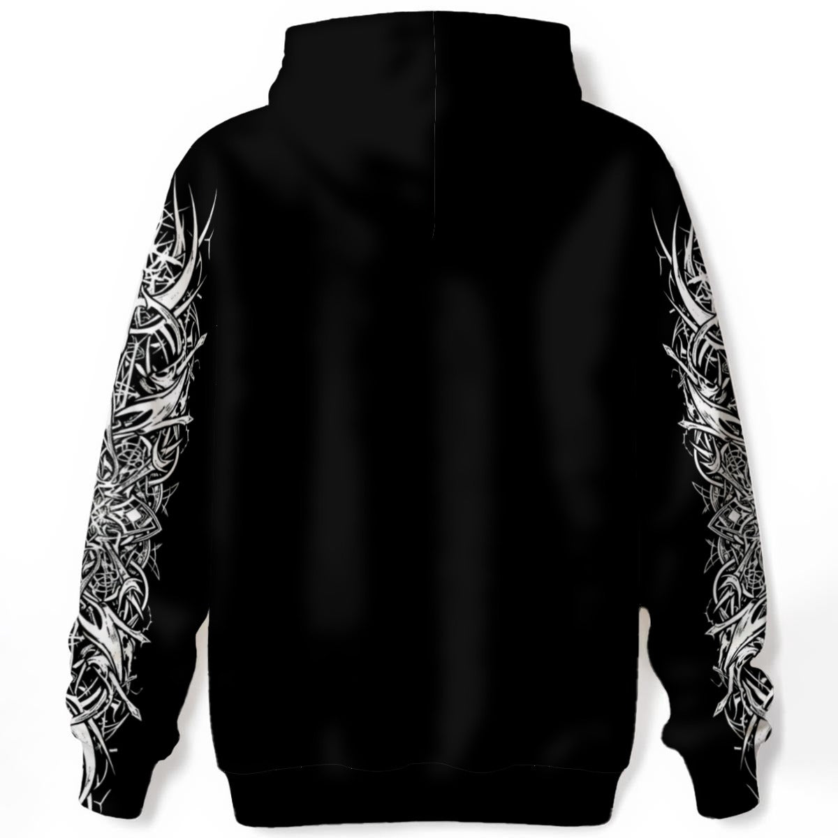 - Hosszú ujjú, belső hurkolt minta, zsinórral, elülső zseb